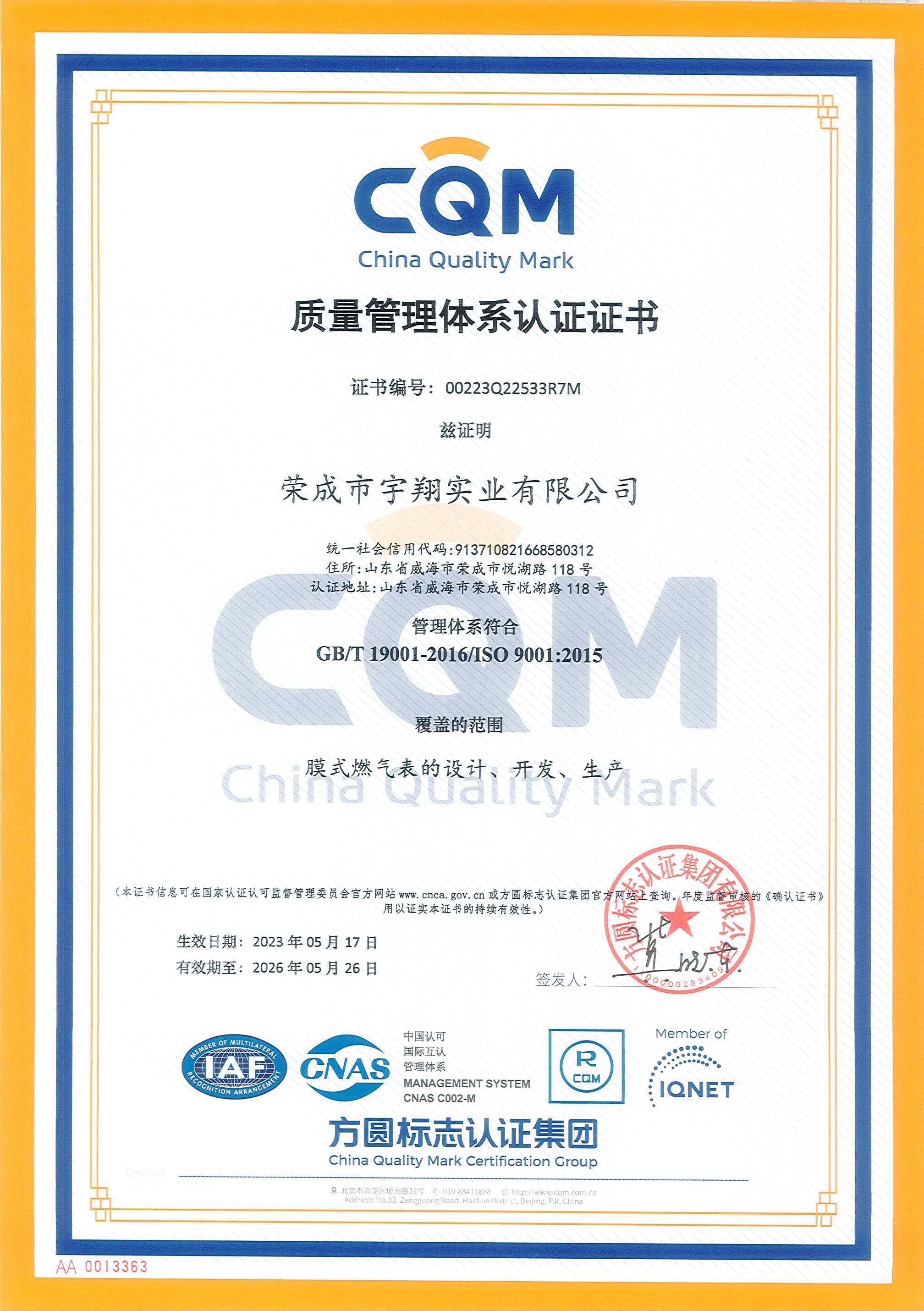 认证证书